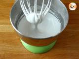 Das Eiweiß verquirlen und dann nach und nach den Zucker hinzufügen. Die Eiweiße müssen kompakt und glänzend sein.