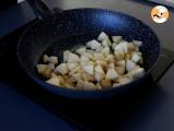 Den braunen Zucker hinzufügen und die Äpfel etwa 5 Minuten lang anbraten. Zurückstellen.