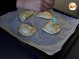 Falten Sie die Hausschuhe zusammen und schließen Sie sie. Mit geschlagenem Ei bestreichen und 1 Stunde kalt stellen.