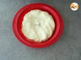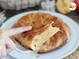 Schieben Sie die Ränder des Teigs unter den ersten und drücken Sie ihn nach unten, damit er zusammenklebt. Machen Sie ein Loch in die Mitte des Kuchens und legen Sie ein kleines Stück gerolltes Pergamentpapier hinein, um einen Kamin zu formen.