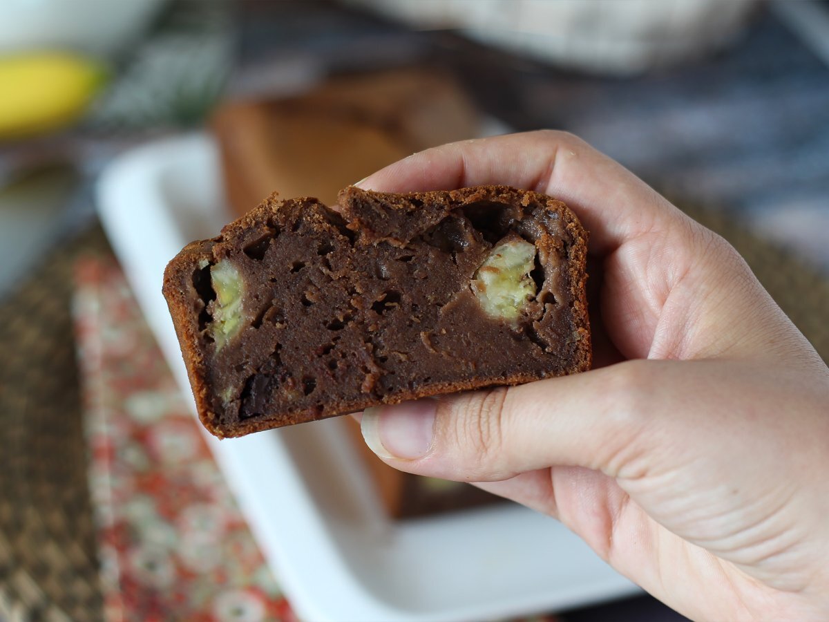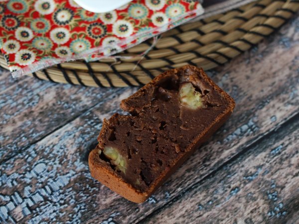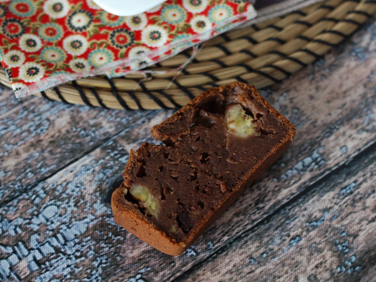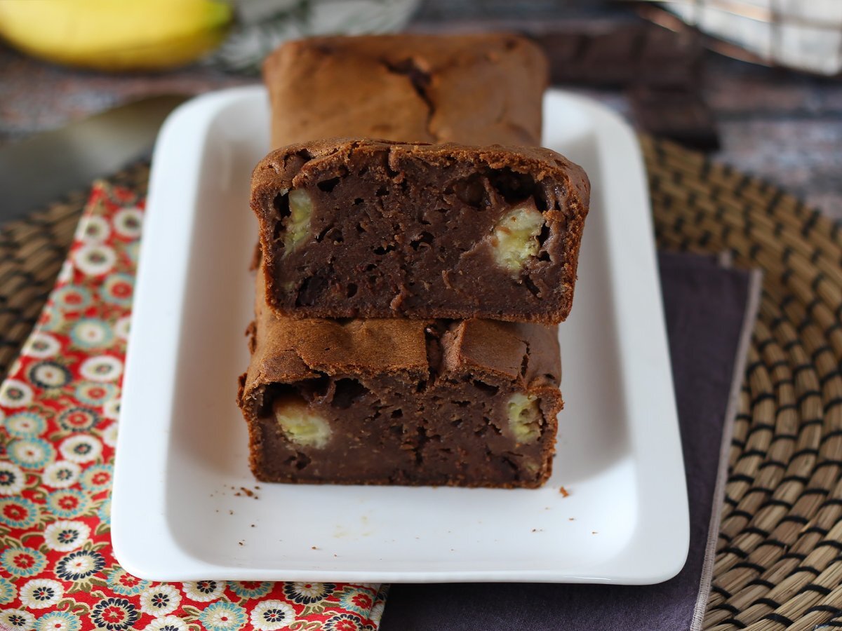 Eier und Zucker verrühren. Bananen, Vanille, Butter und geschmolzene Schokolade hinzufügen und gut vermischen. Mehl und Backpulver hinzufügen. - Den Teig in eine gefettete Kuchenform füllen und im vorgeheizten Backofen bei 180 °C 40 Minuten backen.