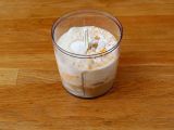 Mehl, Backpulver, Zucker, Sahne, Milch, Vanille und Eier dazugeben. Alles gut durchmixen.