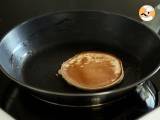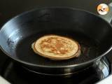 Etwas Butter in einer heißen Pfanne schmelzen und etwas Teig hineingeben. 1 bis 2 Minuten backen lassen und wenden.