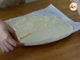 Rollen Sie den ersten Blätterteig aus. Die Konditorcreme auf einer Seite des Teigs verteilen und die ungefüllte Hälfte darauf falten.