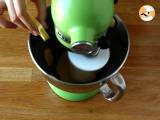 Das Mehl in die Knetschüssel geben. Salz und Zucker an der Seite hinzufügen und dann mit dem Mehl bedecken. Danach die Eier und schließlich die Milch-Hefe-Mischung hinzugeben.