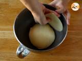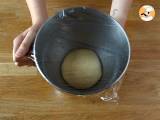 Wenn sich der Teig vom Rand löst, die Schüssel entfernen und den Teig zu einer Kugel formen. Abdecken und 1,5 Stunden ruhen lassen.