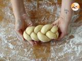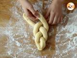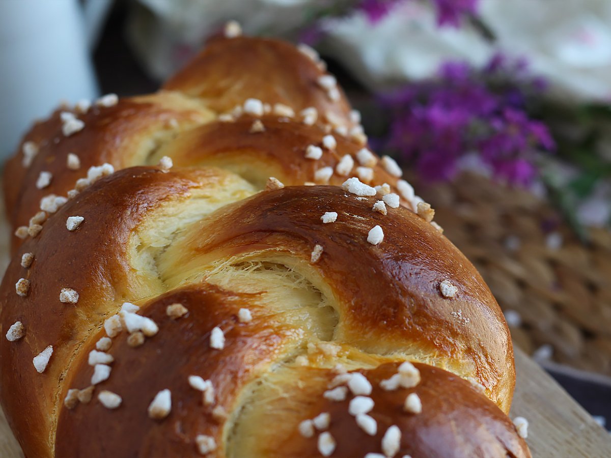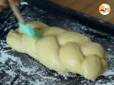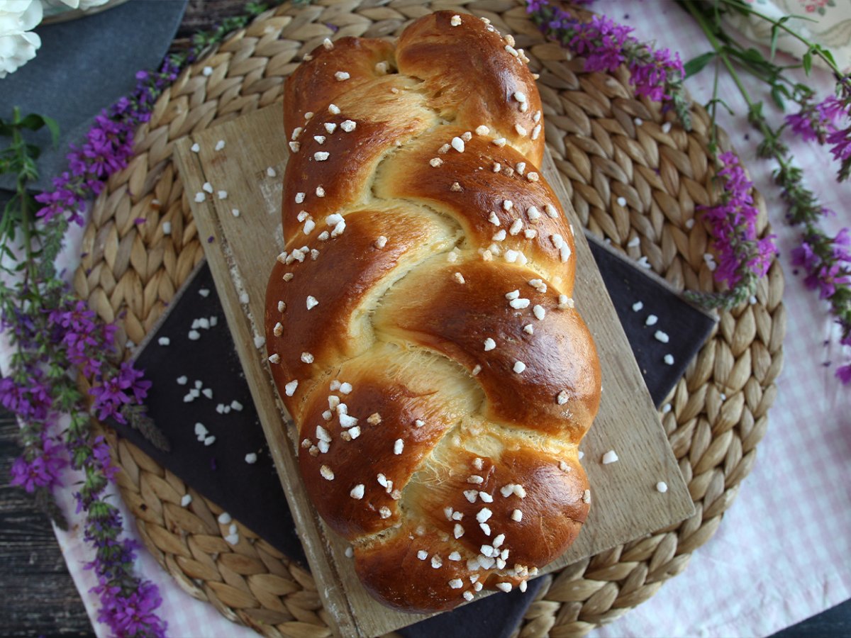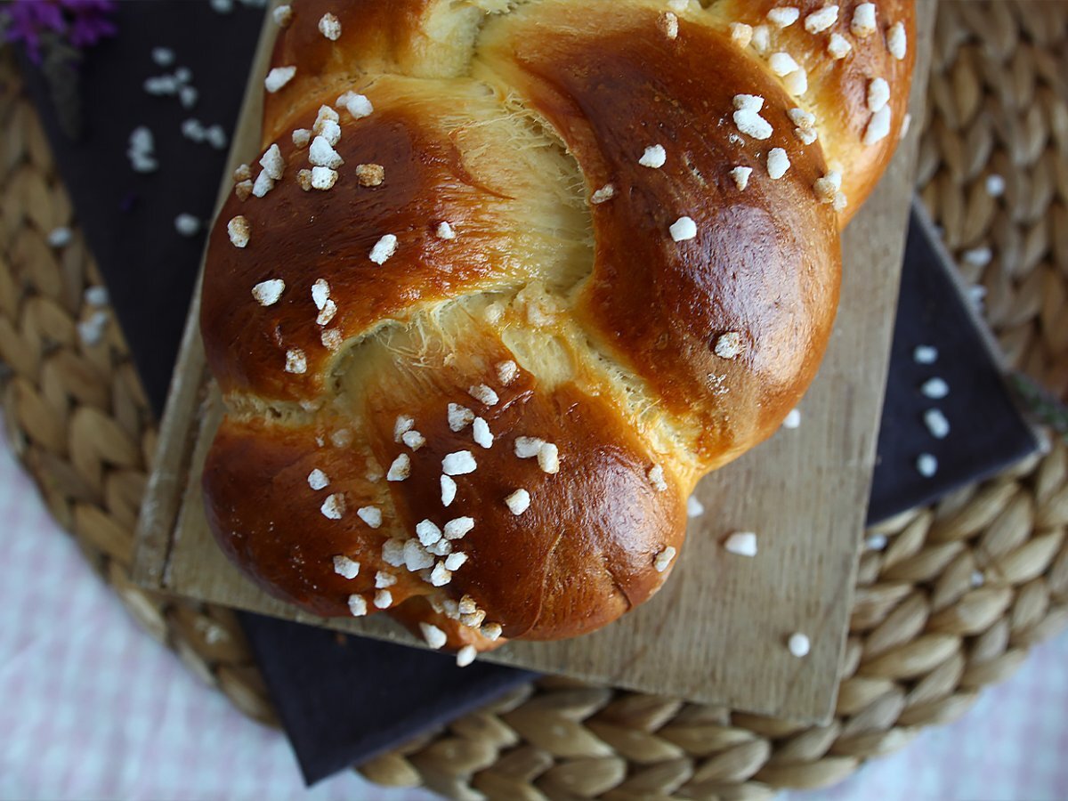 Den Zopf 1 Stunde bei Raumtemperatur ruhen lassen, dann Ei und Milch verrühren und das Brötchen vorsichtig mit der Mischung bestreichen.