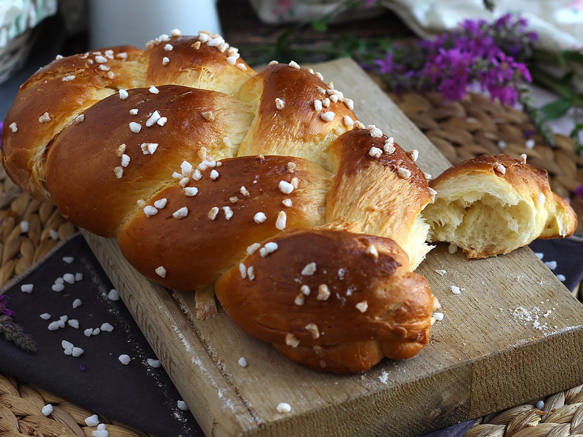 Diese Brioche hat eine besondere Textur, da die Brösel dichter sind als bei einer klassischen Brioche, was sie einzigartig macht.