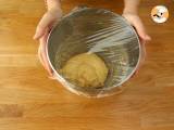 Die weiche Butter nach und nach hinzufügen. Wenn sie eingearbeitet ist, 6 Minuten auf Stufe 1 und dann 6 Minuten auf Stufe 2 kneten. Die Schüssel filtern und 2 Stunden kühl stellen.
