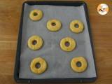 Drücken sie die Kugeln Flach auf das Blech. Dann mit dem Ausstecher darauf drücken und den Überschuss an den Seiten entfernen. Mit dem kleinen Ausstecher Löcher in die Mitte der Patons stechen. 2 Stunden bei Raumtemperatur ruhen lassen.