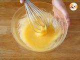 Die Eier mit dem Zucker verquirlen. Die geschmolzene Butter hinzufügen und vermischen.
