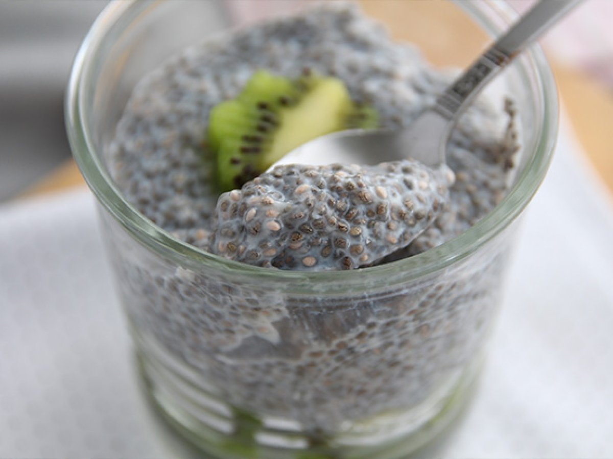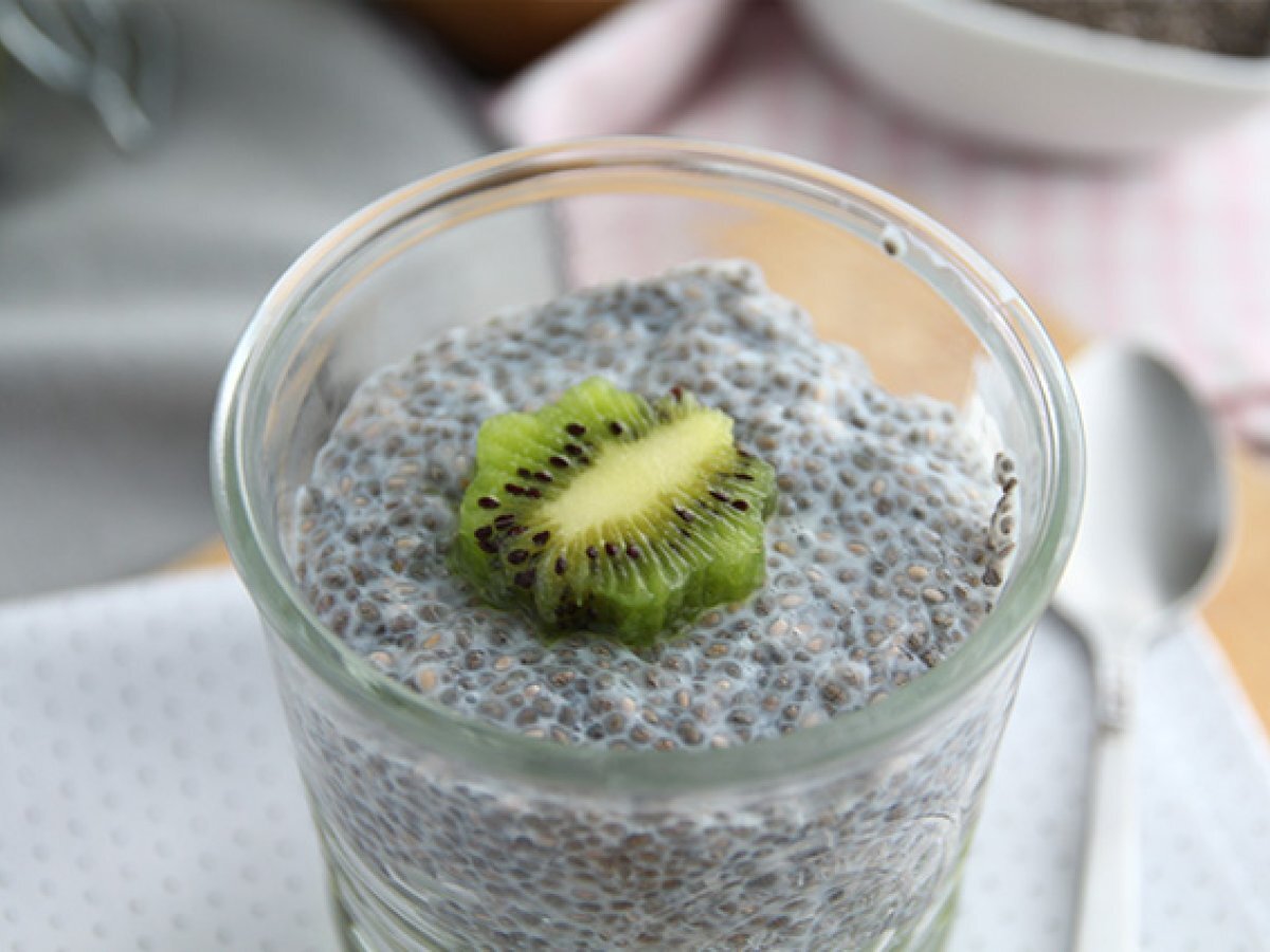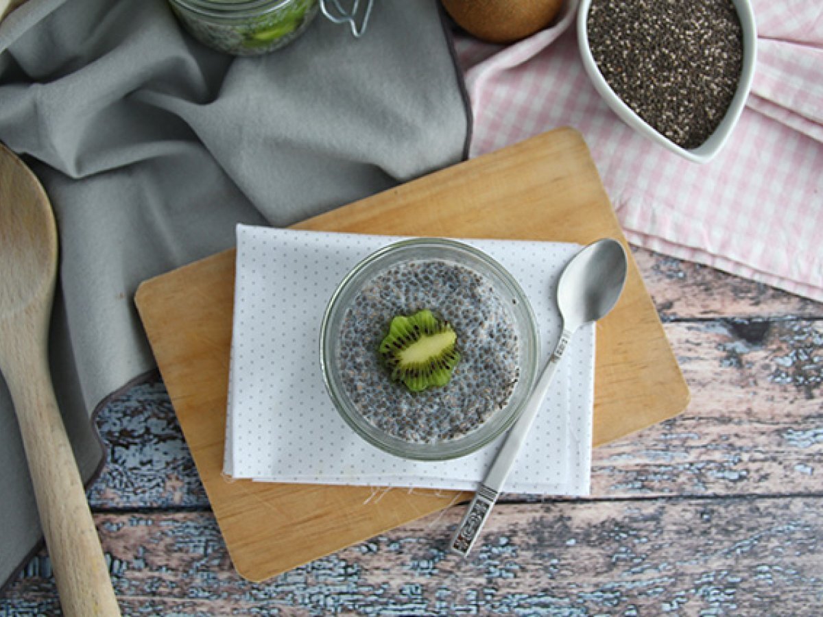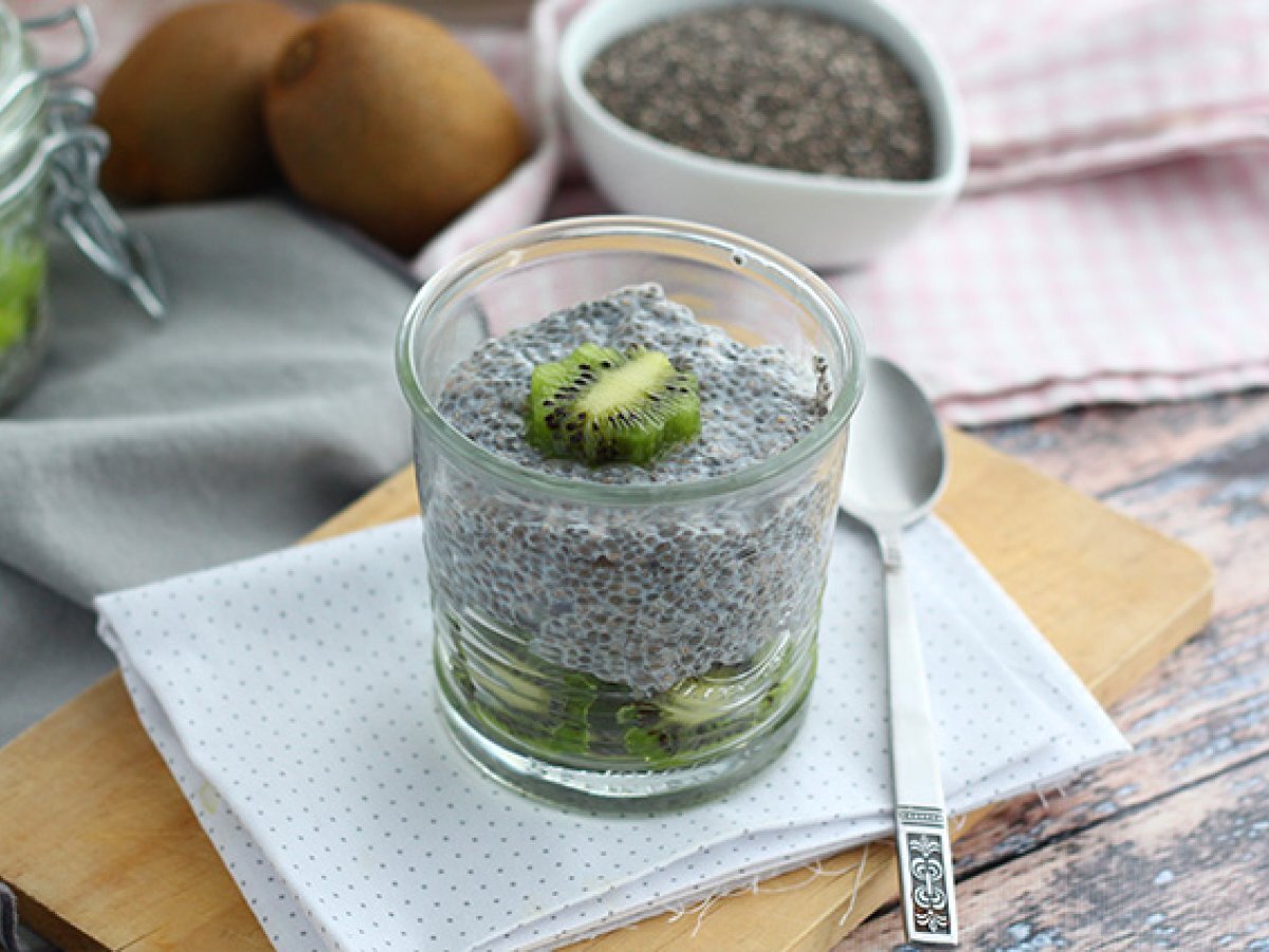 Für eine kräftige, frische und fruchtige Zwischenmahlzeit entscheiden Sie sich für dieses Rezept für Pudding mit Chiasamen und Kiwi! Dieses Rezept ist einfach nachzumachen und muss nicht gekocht werden! Mit anderen Worten: ohne Kopfzerbrechen :-) Sie müssen nur Ihre Zutaten verrühren, alles stehen lassen, damit die Samen bei Kontakt mit der Milch aufquellen und ... das war's! Dank dieses Superkorns tanken wir Vitamine, Ballaststoffe und pflanzliche Proteine! Durch die Verwendung eines pflanzlichen Getränks (Mandel, Reis, Soja...) stellt dieses Dessert eine ideale Lösung für Vegetarier und Veganer dar. Als Bonus ist es garantiert glutenfrei. Eine schöne gesunde Pause zu jeder Tageszeit :-)