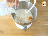 Geben Sie Mehl, Hefe, Zucker, Eier und Milch in die Schüssel Ihres Roboters. Etwa 4 Minuten lang kneten.