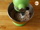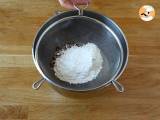 Kakao, Mehl und Backpulver in die Schüssel sieben, dann das Salz hinzufügen und alles mit einem Spatel vermengen.