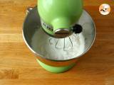 Eier, Vanille und Zucker verquirlen, bis sich das Volumen verdoppelt hat.