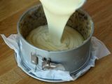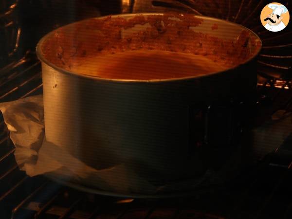 Den Teig in die Springform geben, auslegen, einfetten und bemehlen. Den Keksteig gut in der Form verteilen und in den Gefrierschrank stellen, während die Flan-Mischung zubereitet wird (15-30 Min.)