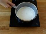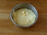 Gießen Sie die resultierende Mischung in den Topf (über der Hitze) und verquirlen Sie sie kontinuierlich, bis die Mischung zu kochen beginnt. Vom Herd nehmen, die Butter in kleinen Stücken dazugeben und gut vermischen.