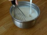 Eier, Eigelb und Zucker in eine Rührschüssel geben und mit einem Schneebesen verrühren. Die Maisstärke hinzufügen und gut vermischen. Wenn die Milch heiß ist, die Eier nach und nach unter ständigem Rühren hinzufügen.