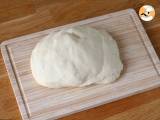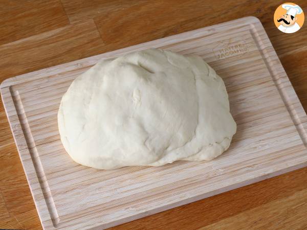 Mit dem Knethaken ungefähr 5 Minuten zu einem gleichmäßigen Teig verkneten Und zugedeckt 30 Minuten ruhen lassen.