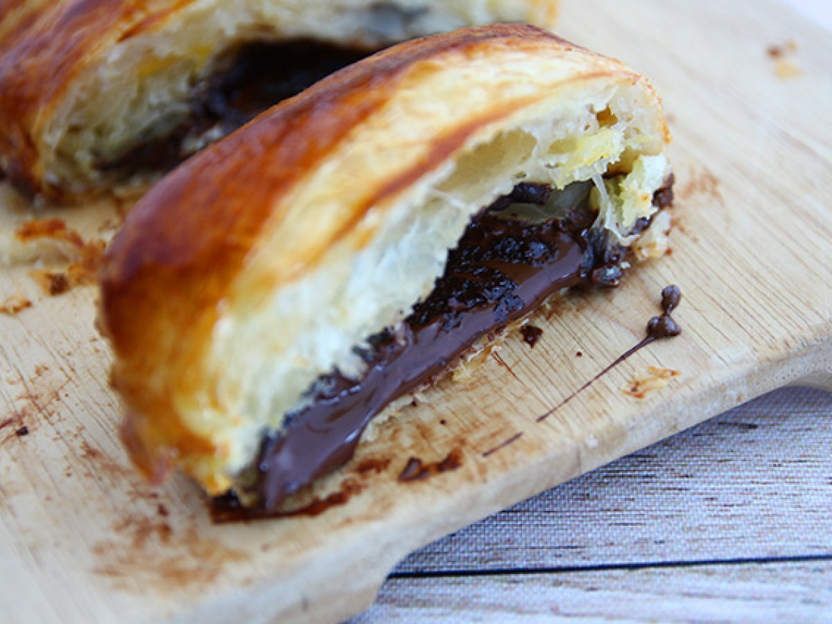 Für dieses Rezept benötigen Sie lediglich 1 Blätterteig, 200g Schokolade (1 Tafel) und 1 Eigelb.
