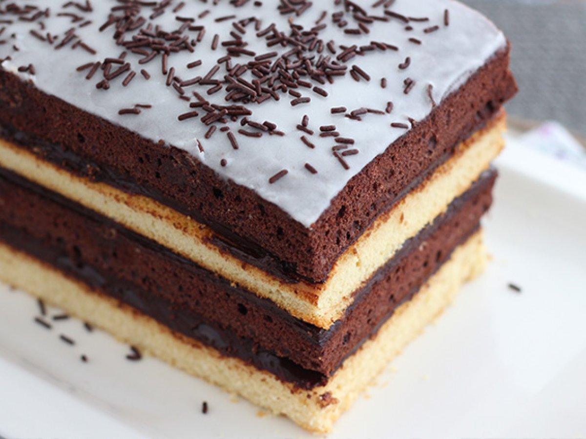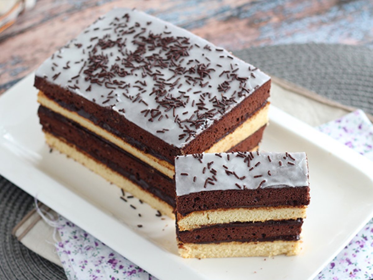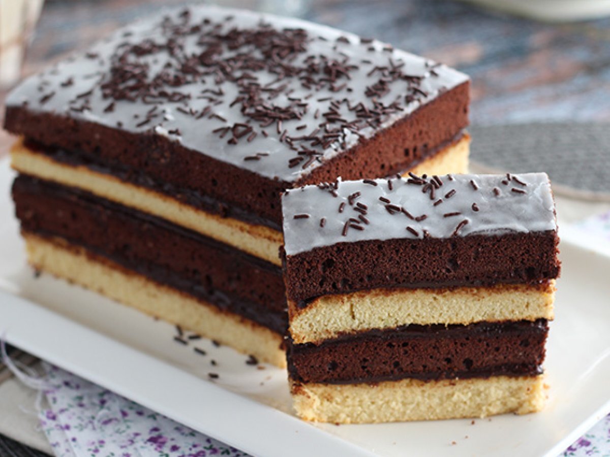 In der Schule während des Pausenbrots haben Sie als Kind bestimmt einen neapolitanischen Kuchen verschlungen ;-) Nun, heute schlagen wir Ihnen vor, ihn in einer Maxi-Version und vor allem selbstgemacht zu backen! 1 Schokoladenbiskuit + 1 Vanillebiskuit + 1 Glasur, alles mit Schokoladenstreuseln bedeckt. Nicht zu vergessen die Ganache zwischen all diesen Schichten natürlich :-) Stellen Sie also dieses extra saftige und leckere Dessert mithilfe unserer schriftlichen Erklärungen / Fotos / Videos her. So können Sie dieses Rezept ganz einfach nachkochen, ohne einen Krümel zu verlieren :-)