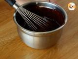 Schokolade und Butter schmelzen. Die Eier mit dem braunen Zucker vermischen. Fügen Sie das Mehl hinzu, dann die Schokoladenmischung + geschmolzene Butter.