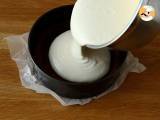 Den Käsekuchen 1 Stunde lang bei 150 °C im Heißluftofen backen. Aus dem Ofen nehmen und 30 Minuten bei Zimmertemperatur abkühlen lassen. Anschließend für mindestens 3 Stunden, am besten über Nacht, in den Kühlschrank stellen.