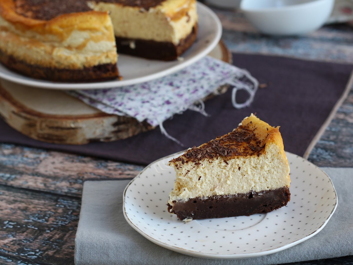 Käsekuchen-brownie, die erstaunliche kombination, die ihren gaumen erfreuen wird!