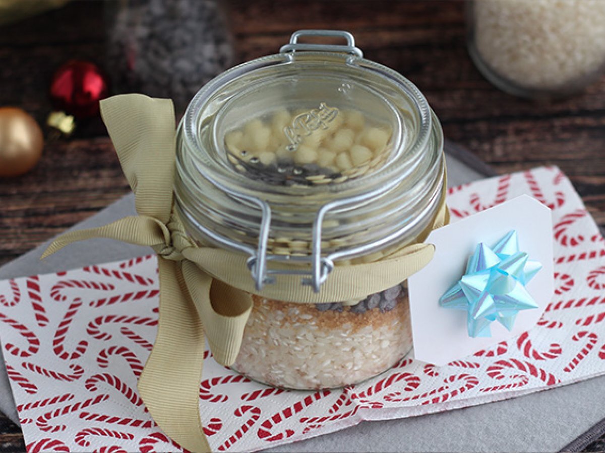 Dieses Jahr zu Weihnachten machen wir uns an die Herstellung von selbstgemachten Geschenken! Und wir bleiben beim Thema Kochen, um unseren Lieben eine Freude zu machen. Bereiten Sie also Ihr schönstes Glas vor und füllen Sie es mit Reis, Zucker und Schokolade, um ein Milchreis-Set zu kreieren! Der oder die Glückliche, die dieses Geschenk erhält, muss nur noch den Inhalt Ihres Glases in einen Topf geben, Milch hinzufügen und darauf warten, dass sich ihr extra cremiges und leckeres Dessert bildet :-) Wenn Sie also dieses Jahr auch loslegen möchten, besuchen Sie unsere schriftlichen, Foto- und Videoschritte!