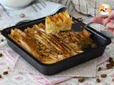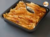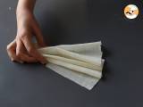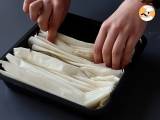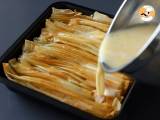 Schneiden Sie die Filoblätter so zu, dass sie die gleiche Breite wie die Form haben, und falten Sie sie dann, sodass die Ober- und Unterseite zur Mitte zeigen (siehe Foto).