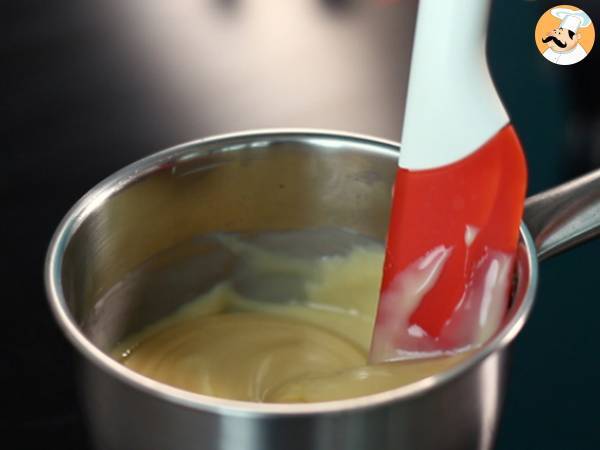 Sie können den Teig in den Kühlschrank stellen, um ihn schneller abzukühlen, aber warten Sie, bis er etwas abgekühlt ist.