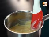 Butter und Kondensmilch in einen Topf geben. Bei mittlerer Hitze etwa 15 Minuten lang rühren, um die Mischung einzudicken. Der Teig sollte sich vom Rand der Form lösen.