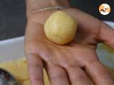 Aus dem Teig Kugeln formen und diese in Kokosraspeln wälzen.