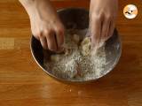Haferflocken, Mehl, braunen Zucker, Salz und Backpulver vermischen. Die in kleine Stücke geschnittene kalte Butter dazugeben und mit den Fingern zu Streuseln verrühren.