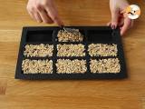 Die Mischung in die Müsliriegelformen (oder auf den Boden eines mit Backpapier ausgelegten Backblechs) geben und