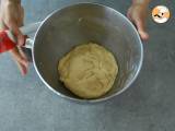 10 Minuten ruhen lassen, dann den Teig etwa 10 Minuten lang kneten. Er sollte elastisch sein.