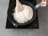 Das Mehl in einer Pfanne bei mittlerer Hitze anrösten. Wenn es sich leicht verfärbt, beiseite stellen und abkühlen lassen.