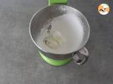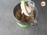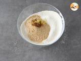 Wenn die Textur cremig wird, die Mehl-Mandel-Pulver-Mischung hinzufügen und zu einem gleichmäßigen Teig verrühren.