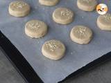 Legen Sie Ihre Formen auf Backpapier und geben Sie Sesamkörner darüber.