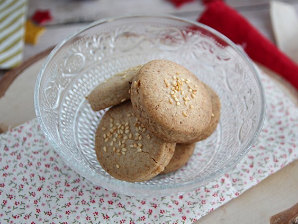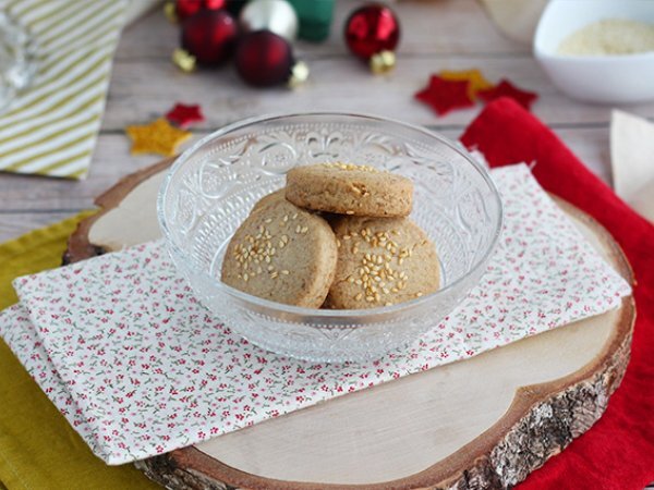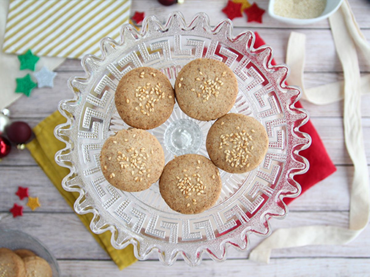 Die Hauptzutaten sind Puderzucker, Schweineschmalz, Mehl, gemahlene Mandeln, Zimt, Zitronenschale und Sesam.