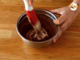 Den Teig in zwei Teile teilen. Im ersten Teig: Ungesüßtes Kakaopulver hinzufügen und gut unterrühren.