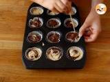 Beide Teige mithilfe von Esslöffeln nach dem Zufallsprinzip in die Muffinschalen verteilen.