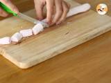 Nehmen Sie nach dieser Zeit Ihre Marshmallow-Würstchen ab und schneiden Sie sie in Stücke.