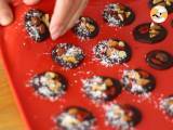 Zum Schluss bestreuen Sie einige Ihrer Pralinen mit Kokosraspeln.