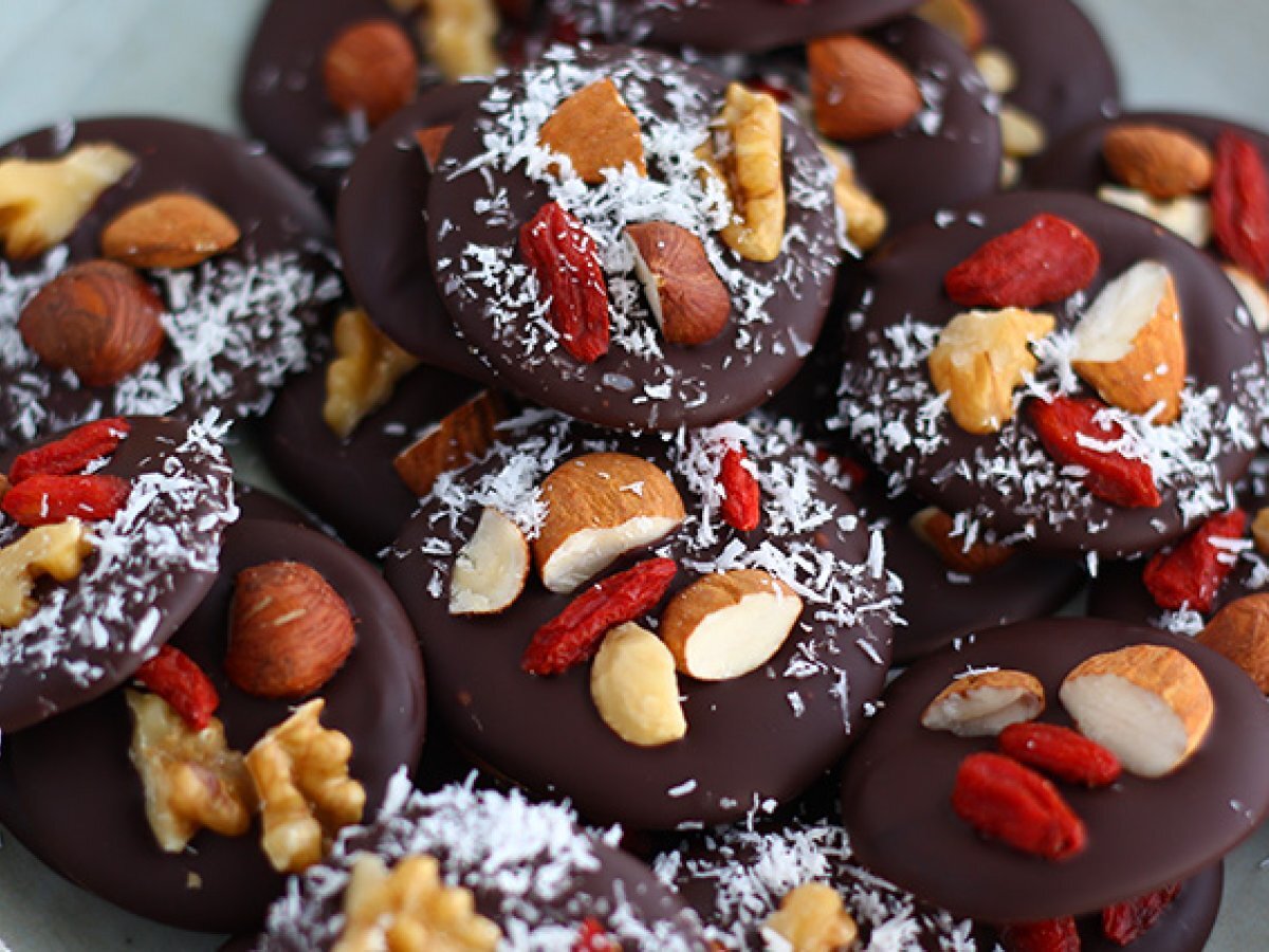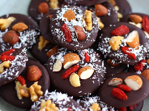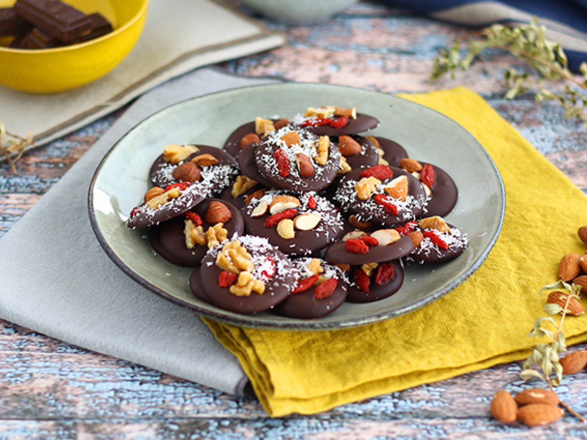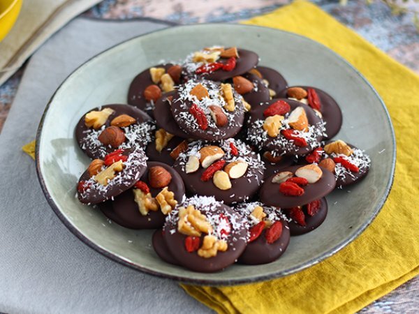 Mendiants, pralinen mit trockenfrüchten