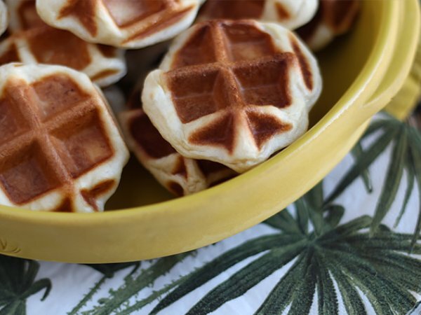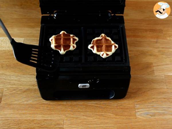 Kleine Teigstücke von 21 g formen und in der Waffelmaschine ca. 2,5 Minuten backen (hängt von der Leistung Ihrer Maschine ab).