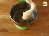 Nach und nach die in Stücke geschnittene Butter hinzufügen und dabei weiterkneten. Schließlich etwa 10 Minuten lang kneten, damit sie gut eingearbeitet wird. Die Schüssel filtern und 1 Stunde kühl stellen.
