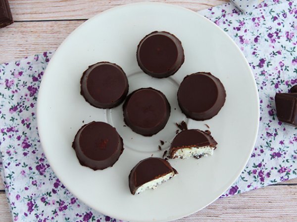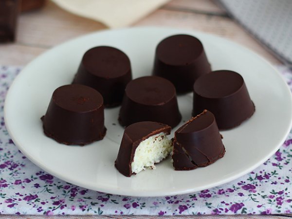 Es wird empfohlen, dunkle Schokolade zu verwenden, da sie einen intensiven Geschmack hat und gut mit der süßen Kokosfüllung harmoniert.