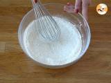 In einer Schüssel die trockenen Zutaten vermischen: Mehl + gemahlene Mandeln + Maisstärke + Zucker + Backpulver + Salz.