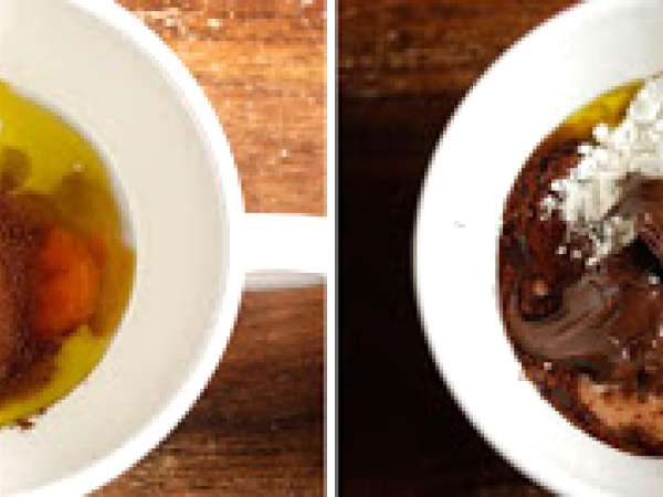 Fügen Sie die 2 EL hinzu. Esslöffel Nutella dazugeben und vorsichtig verrühren, ohne dass eine homogene Masse entsteht.